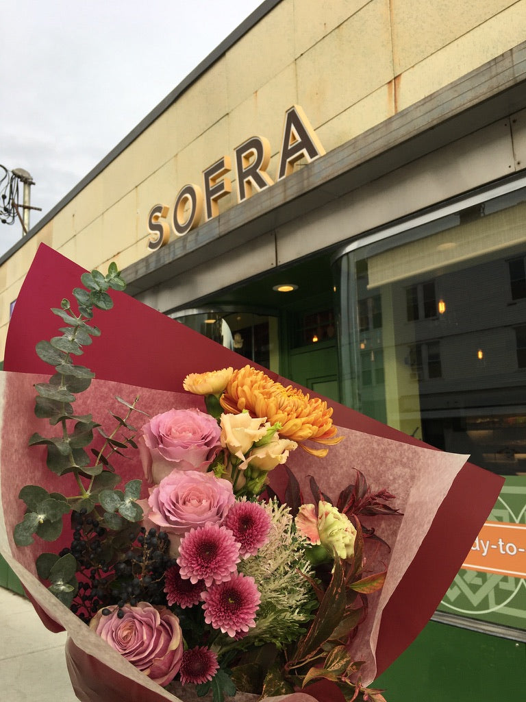 Our hand-tied bouquet hits all the autumnal tones, blooms, and textures. Perfect for that extra finishing touch to your table or for a host gift! Each bouquet comes beautifully wrapped and fastened with ribbon.